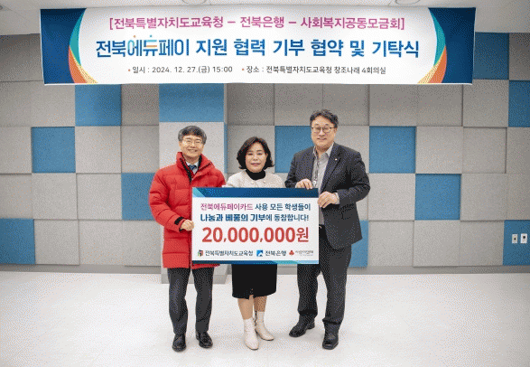전북은행은 전북에듀페이카드 바우처 사용액의 0.1%에 해당하는 금액을 에듀페이카드 운영 협약 기간 동안 매년 사회복지공동모금회에 기부하는 방식으로 학생 교육복지에 동참하기로 했다.
