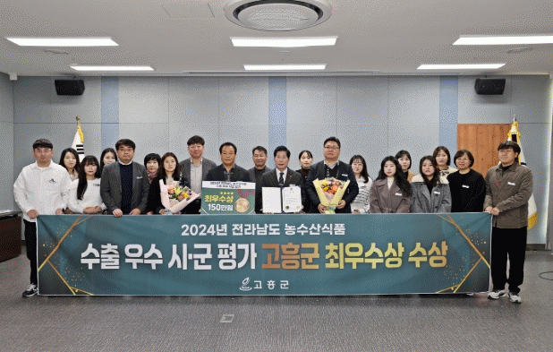 이번 수상은 고흥군이 2년 연속 1억 달러 이상의 농수산물 수출을 달성하며, 수출 실적과 증가율, 지원사업 운영, 기관장의 관심도, 홍보 실적 등에서 높은 평가를 받은 결과다.