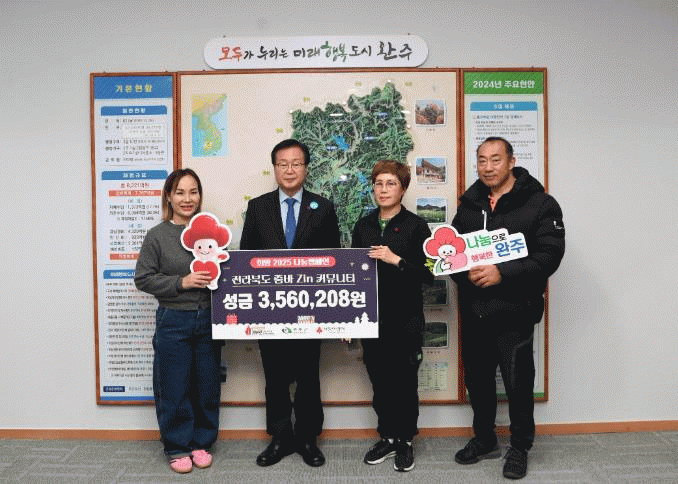 유희태 완주군수는 “전달된 성금은 도움이 필요한 이웃들을 위해 소중히 사용하겠다”며 감사 인사를 전했다.