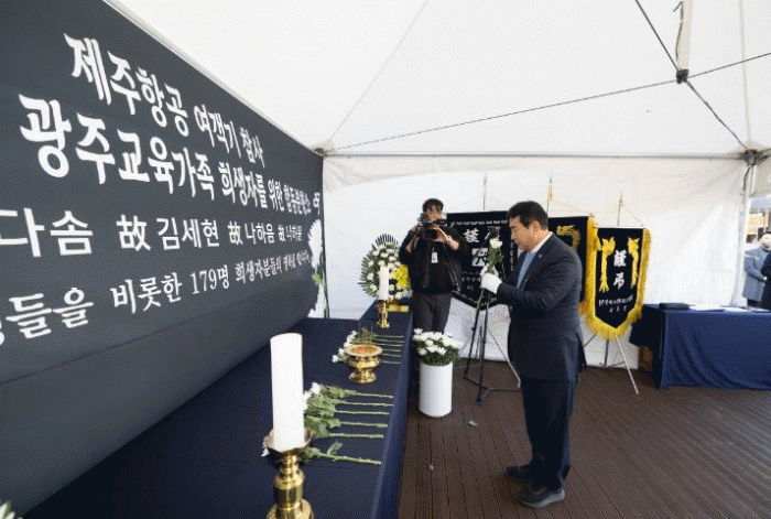 시교육청은 제주항공 여객기 참사에서 희생된 광주 학생 4명을 비롯한 179명의 희생자를 추도하기 위해 지난 30일 이음광장에 합동분향소를 설치했다.
