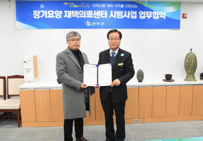 완주군은 지난해부터 고산성모의원과 업무협약을 체결해 장기요양 재택서비스를 제공했고, 이번 업무협약으로 올해 3차 시범사업을 추진한다.