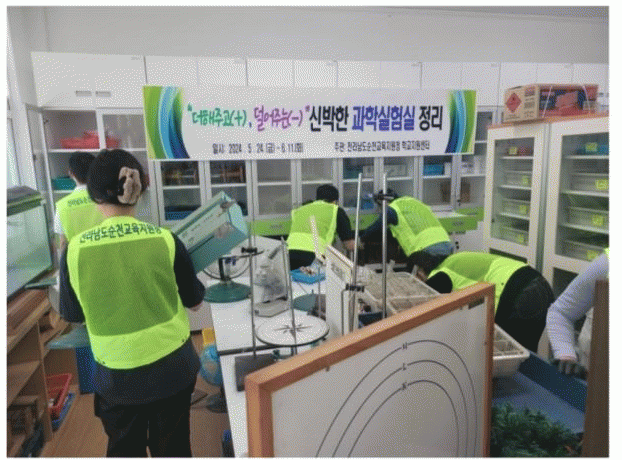 순천교육지원청은 라벨링 작업을 통해 교구 관리 효율성을 높였고, 과학실험실의 쾌적하고 안전한 환경 조성을 위해 과학교구 정리와 폐기물 처리를 지원했다. 여수교육지원청은 교과서 교실 배분, 음악실과 미술실 등 특별실의 정리와 청소를 전문적으로 지원해 교사의 수업 전념 여건을 마련했다.