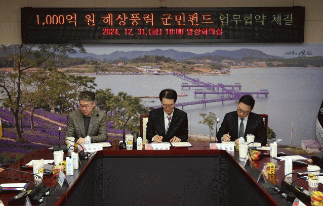 ㈜한화오션의 특수목적법인(SPC)으로 설립된 신안우이해상풍력㈜은 신안 해역에 국내 최대규모인 390MW(15MW× 26기)급 해상풍력 발전사업을 추진하고 있다. 이에 신안군은 지역 주민, 송·변전설비 인근 주민, 지역 금융권 등이 해당 발전사업에 직접 투자하여 수익을 창출하고, 주민수용성을 확보하기 위해 전국 최초 1,000억 원 규모의 해상풍력 군민펀드를 조성하고자 업무협약을 체결했다.