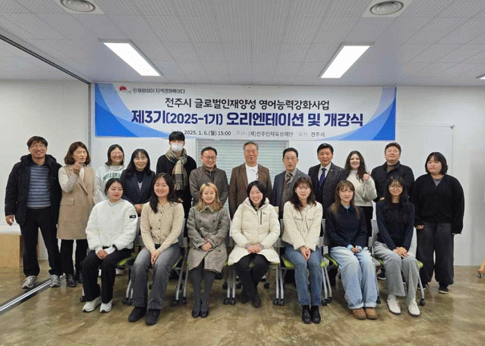 시와 (재)전주인재육성재단은 6일 전주인재육성재단 5층 공동체 공유마당에서 ‘전주시 글로벌 인재양성 영어능력 강화사업’ 제3기(2025년 1기) 개강식 및 오리엔테이션을 개최했다.