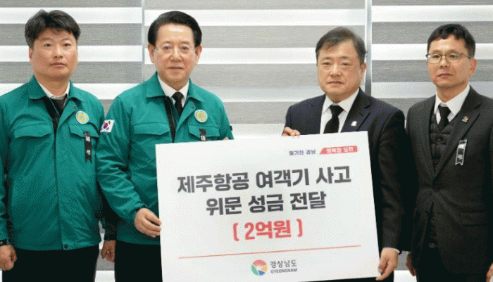 또 2일 경남도는 박명균 행정부지사를 단장으로 한 경남도대표단이 무안공항 분향소를 찾아 2억 원을 지정기부처에 맡기기로 했다.