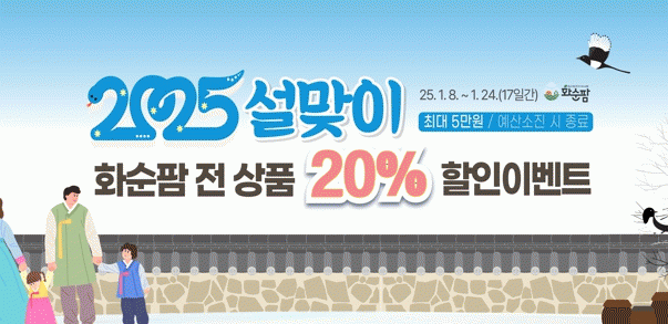 화순팜에서는 1월 8일부터 24일까지 을사년 설맞이 할인 이벤트를 진행할 예정으로, 전 상품 20% 할인쿠폰(최대 5만 원)을 지급하고, 신규회원에게는 2,000원 할인쿠폰을 추가로 지급한다.