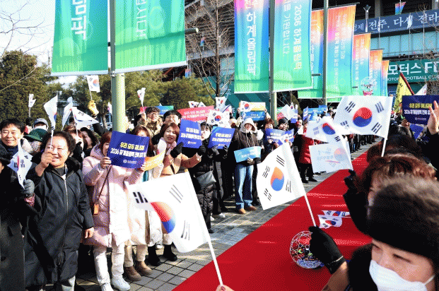 새만금 33센터(6일)에서는 500여 명의 주민이 응원 타올과 환영 깃발을 흔들며 평가위원들을 맞이했고, 올림픽 유치 홍보대사*인 전북 출신 체육 영웅과 정강선 도체육회장은 올림픽 상징 목도리를 걸어주며 환영의 메시지를 전했다.