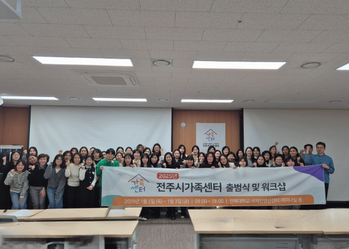 이해경 전주시가족센터장은 “이번 출범식을 통해 가족지원서비스 통합지원 기관으로서 전문적 운영 기반을 마련하고, 워크숍을 통해 건강가정지원센터와 다문화가족지원센터 직원 간 일체감을 형성해 소통을 활성화할 수 있는 계기가 됐다”면서 “앞으로도 지역사회의 다양한 가족 지원 프로그램을 통해 전주시민의 행복 증진에 기여하겠다”고 포부를 밝혔다.