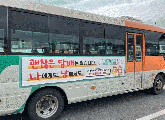 김대곤 보건의료원장은“버스를 활용한 금연 광고를 통해 지역주민들에게 금연의 중요성을 일깨우고 금연을 다짐하는 계기가 되길 바란다”며“앞으로도 담배 연기 없는 건강한 임실군을 만들기 위해 금연 분위기를 조성하고 지역주민들의 금연 동기부여에 최선을 다하겠다”고 말했다.