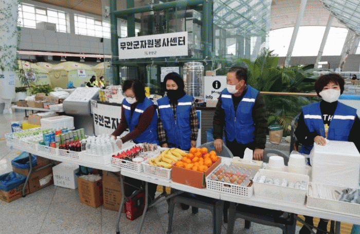 하나님의 교회 세계순복음교회는 무안국제공항에서 매식 300인분의 식사를 지원하고 있으며 오는 31일까지 활동을 계속할 예정이다.