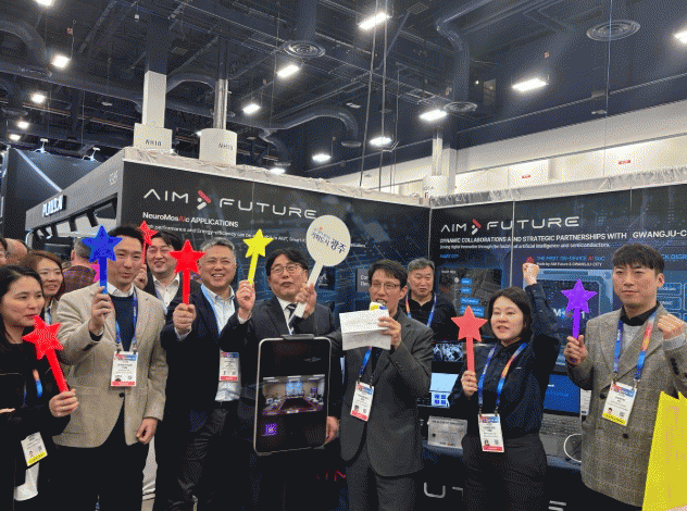 광주광역시와 ㈜에임퓨처는 9일 오전 7시(현지시간 8일 오후 2시) 미국 라스베이거스에서 열린 ‘CES 2025’ 에임퓨처 전시부스에서 광주형 AI반도체 ‘AiM-GJ-1(에임-지제이-원)’ 시제품 데모 행사를 온·오프라인으로 동시 진행했다.