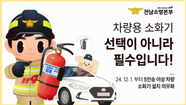 이번 의무화 조치는 차량 화재 발생 시 초기 대응을 통해 인명과 재산 피해를 줄이기 위해 마련된 제도로, 모든 5인 이상 승용차량은 반드시 차량용 소화기를 비치해야 한다.