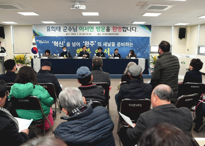 유 군수는 “삼례읍과 이서면의 잠재력을 극대화하고, 두 지역의 미래를 선도할 전략을 차질 없이 추진해 나가겠다”며 “완주군이 대한민국을 대표하는 혁신과 상생의 중심지로 자리매김할 수 있도록 최선을 다하겠다”고 밝혔다.