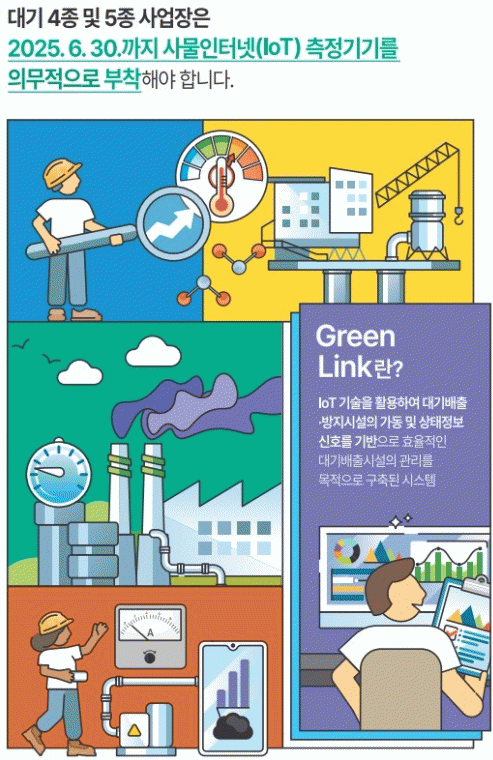 소규모사업장 사물인터넷 측정기기는 대기오염물질 배출시설과 방지시설의 가동상태를 실시간으로 관계 행정기관에 전송하도록 하는 시설로, 기기 설치 시 대기오염물질 배출을 예방하고 사업장을 과학적으로 관리할 수 있게 된다.