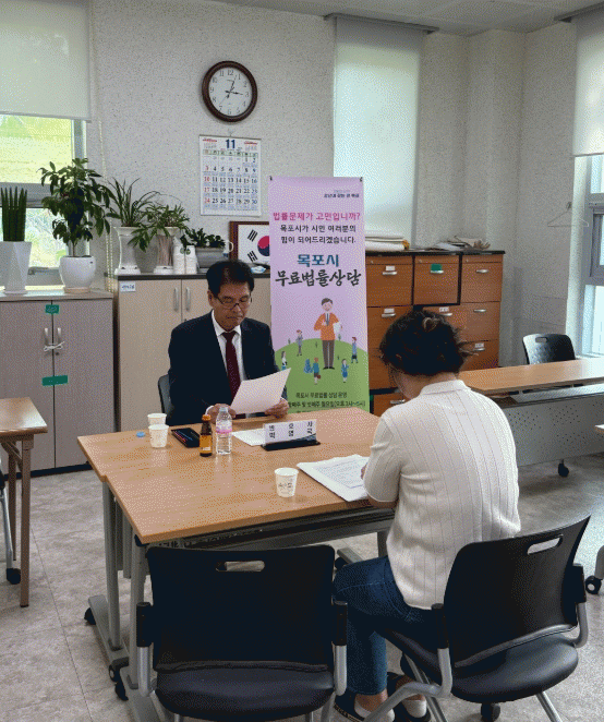 목포시가 운영중인 무료법률상담실은 시간적·경제적 등 이유로 변호사와 법률문제를 상담받지 못하는 시민의 권익구제를 위해 지난 2009년부터 목포시 고문·위촉 변호사(고문4, 위촉3) 7명을 선정해 매월 2회(매월 둘째주, 넷째주 월요일) 동행정복지센터를 순회하며 무료 법률상담을 실시하고 있다.