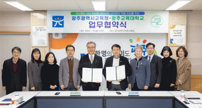 이정선 시교육감과 허승준 총장은 13일 시교육청 상황실에서 ‘유보통합 연수 운영 업무협약’을 체결했다.