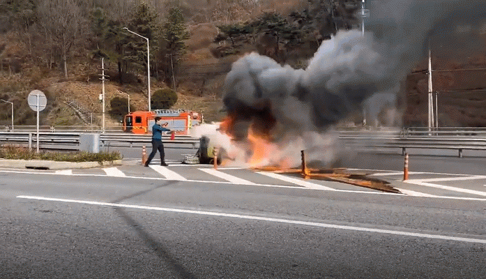 적재함에서 떨어져 나간 포크레인에서 불이 나며 운전자가 타고 있는 전복된 트럭으로 불길이 옮겨 붙어 자칫 인명 피해로 이어질수 있는 것을 화순경찰서 직원들은 소화기로 신속하게 초기 진화를 시도하며 전복된 차량에 있던 운전자를 구조했다.