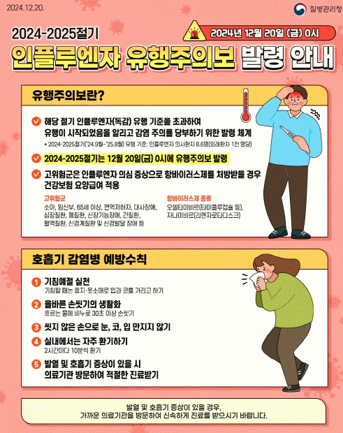 현재 인플루엔자가 급속도로 유행하고 있고 봄철까지 유행이 지속될 것으로 예상되므로, 아직 접종하지 않았다면 신속하게 접종을 받아야한다.