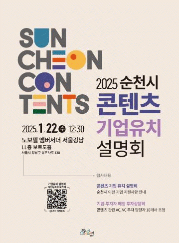 노관규 순천시장은 “2024년 지역에서 콘텐츠산업이 활성화될 수 있도록 행․재정적 기반을 마련했다”며 “기업들이 순천으로 정착하고 지역에서 성장할 수 있도록 차별화된 문화콘텐츠 산업 생태계를 만들어 나가겠다”고 말했다.