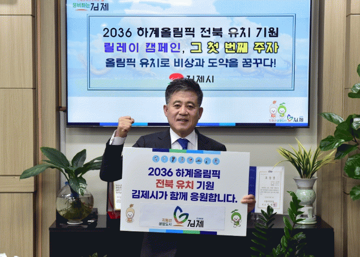 정 시장은 “전북권 발전을 위한 새로운 도전인 2036 하계올림픽 유치를 위해서는 시민들과 도민들의 적극적인 염원과 힘찬 응원이 절실히 요구된다”며 “저를 시작으로 다양한 목소리가 반영될 수 있는 유치기원 릴레이 챌린지로 유치 분위기를 높이고, 2월 유치대상지 선정 시까지 많은 시민들과 사회단체 등이 참여하는 유치 기원 퍼포먼스도 함께 진행해 나갈 계획이다”고 밝혔다.
