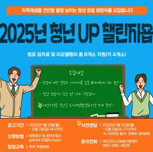 사업 신청에 대한 사항은 부안군 홈페이지 공고 확인 및 부안군도시재생지원센터로 문의하면 된다.