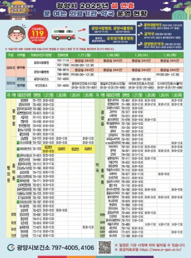 특히, 진료대책반은 연휴 기간 중 응급의료 상황에 신속히 대처하기 위해 지역 내 응급의료기관과 협력해 24시간 응급실과 당번약국을 운영한다.