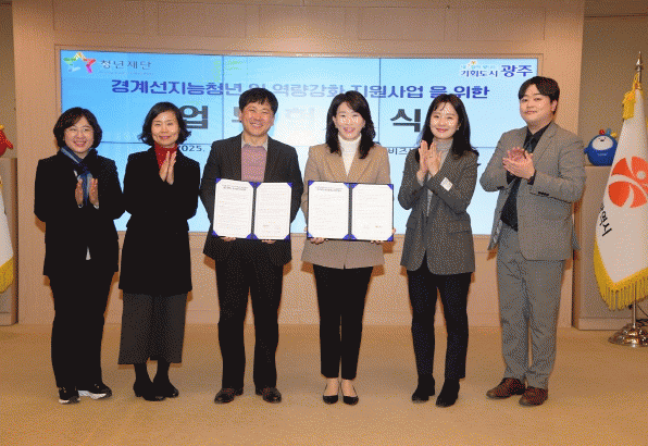광주광역시와 재단법인 청년재단은 16일 오후 시청 비즈니스룸에서 ‘경계선지능 청년 일 역량 강화 지원사업 추진을 위한 업무협약’을 체결했다.