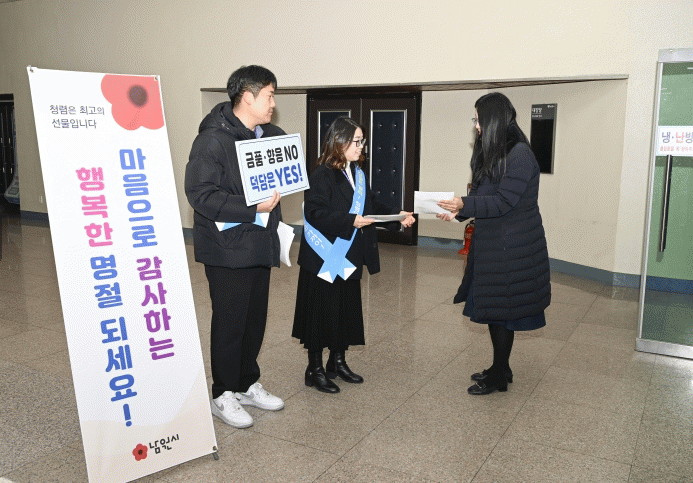 이날 행사는 남원시 청렴·반부패 정책의 일환으로, 설 명절을 앞두고 ▲금품·향응·편의제공 금지 ▲근무기강 해이 점검 ▲ 음주운전 금지 등의 청렴의식 함양을 독려하기 위해 마련됐다.