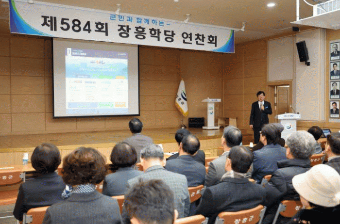 장흥학당은 민간주도의 순수 학습단체로 매월 사회 각계의 다양한 인사를 초청하여 강연과 토론 형식의 연찬회를 개최하고 있다.