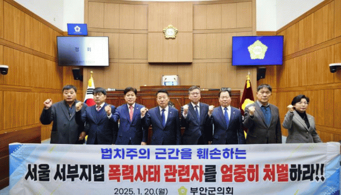 부안군의회는 건의문을 통해 서부지법의 폭력사태에 대해 철저한 진상 규명과 재발 방지 대책을 마련할 것을 강력히 요구했다.