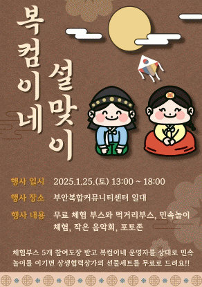 김진우 새만금도시과장은 "이번 행사를 통해 지역 주민들이 전통문화도 즐기고 현대적 문화공연도 함께 즐기는 풍성한 설 명절이 되길 바란다"며, "앞으로도 부안복합커뮤니티센터가 지역 주민과 함께 성장하는 문화공간이 될 수 있도록 노력하겠다."고 전했다.