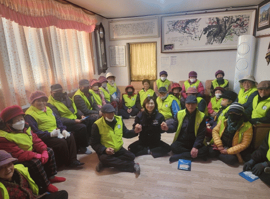 일자리 참여 어르신들은 “날씨가 춥지만 일할 수 있어서 좋은데, 마실 것과 파스도 챙겨주고 건강도 신경 써줘서 너무 고맙다. 우리 노인들에 대한 복지와 군정에 관한 여러 가지를 알려주고, 설 명절까지 염려해 줘서 정말 감사하고 행복하다”고 말했다.