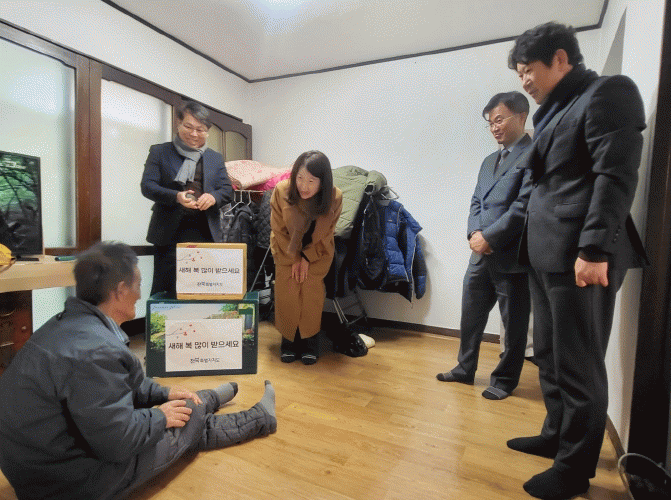 이와 관련해 전북자치도와 서난이 도의회 경제산업건설위원회 의원은 21일 설 명절을 앞두고 주택 개보수 지원을 받은 전주시 차상위세대를 직접 방문해 애로사항을 청취하고 생필품이 담긴 ‘행복꾸러미’를 전달했다.