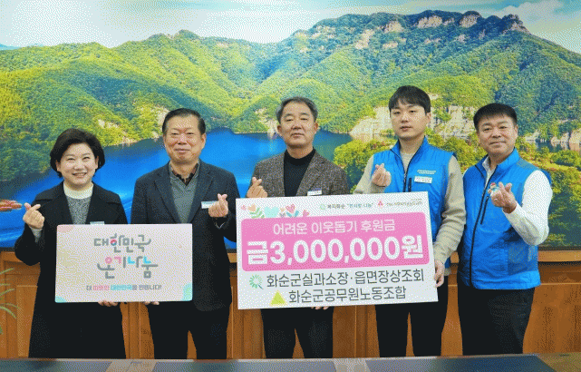 실과소장·읍면장 상조회는 매년 명절마다 관내 소외계층을 위해 상조회비를 기부했다. 특히 올해는 설 명절을 맞아 화순군 공무원노동조합과 함께 뜻을 모아 사회복지과장, 화순읍장, 청풍면장, 도곡면장이 관내 경로당과 장애인 가구를 직접 방문하여 따뜻한 온기를 담아 외롭지 않을 소중한 정성 300만 원을 전달했다.