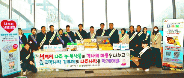 김성기 농축산식품국장은 “설 명절을 맞아 나주 농‧특산물의 우수성과 고향사랑기부제의 가치를 알릴 수 있는 좋은 기회였다”며 “앞으로도 나주의 농산물이 최고의 품질로 소비자들에게 인식되고 사랑받을 수 있도록 최선을 다하겠다”고 말했다.