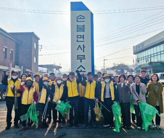 손불면 노인회 회원 20명이 대청소에 자발적으로 참여해 공무원과 함께 도로변과 공원에 버려진 쓰레기를 수거하고 불법 현수막을 철거하며 손불면 일대의 환경을 정비했다.