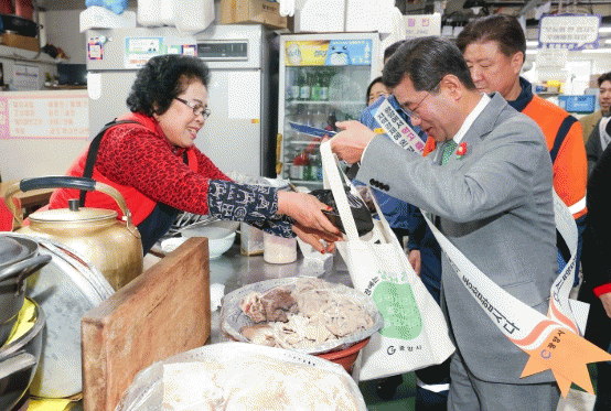 설 대목 체감경기와 물가 변동상황 등을 꼼꼼히 살핀 정 시장은 시민들과 격의 없는 대화를 나누며 불편 사항과 건의 사항을 청취했다.