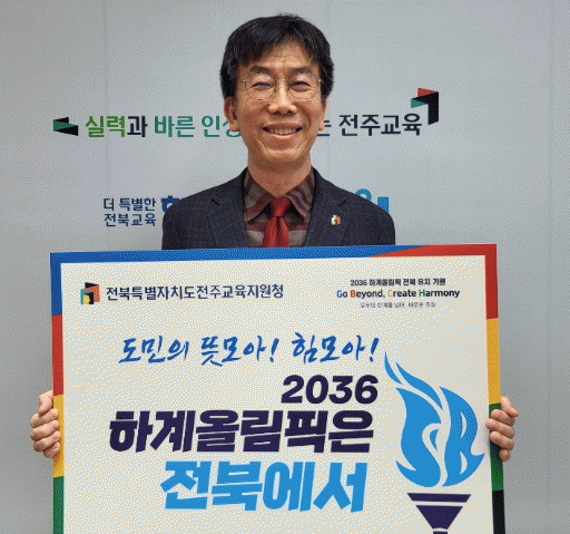 김정기 교육장은 서거석 전북특별자치도교육감의 지목을 받아 이날 성공적인 2036 하계올림픽 전북 유치의 기반인 도민들의 지지를 당부했다.