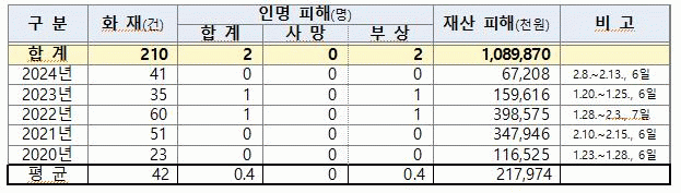 화재는 주로 오후 시간대인 1시, 3시, 2시 순으로 많았으며, 쓰레기 소각 및 화원 방치 등 사소한 부주의가 주요 원인으로 분석됐다.