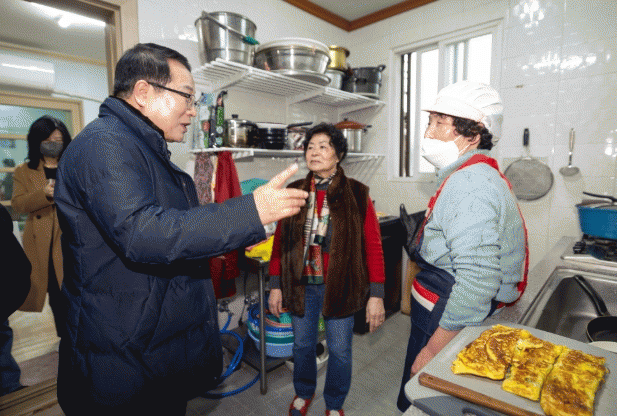정헌율 익산시장은 23일 마동 시영아파트 경로당과 금강동 강경경로당을 방문해 식사도우미 운영 상황을 살폈다.