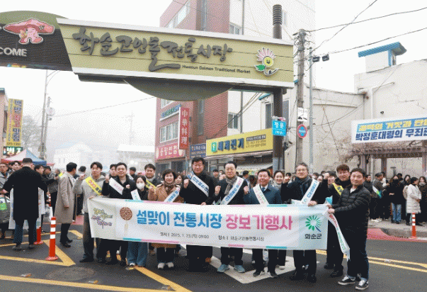 행사 참석자들은 민족 고유 명절인 설을 맞아 시장 상인들의 어려움을 함께 나누며, 민생경제 회복을 위해 전통시장을 돌면서 화순사랑상품권으로 제수용 상품과 다양한 농산물 등을 즉석 구매하며 상인들을 위로·격려했다.