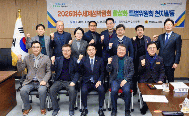 이에 발맞추어 전남도의회에서는 '2026여수세계섬박람회 활성화 특별위원회'를 구성하여 최무경 위원장(더불어민주당, 여수4)을 중심으로 최동익(비례), 송형곤(고흥1), 신의준(완도2), 최미숙(신안2), 김인정(진도), 손남일(영암2), 최정훈(목포4), 류기준(화순2), 진호건(곡성) 의원으로 구성되어 박람회의 성공개최를 위해 활발한 활동을 전개해 가고 있다.