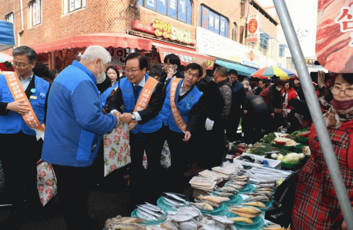 참석자들은 경기 침체로 어려움을 겪고 있는 상인들을 격려하며 제수용품과 생필품을 구매하고, 장바구니를 시장을 찾은 방문객들에게 나눠주며 전통시장 활성화에 동참할 것을 홍보하고 있다.