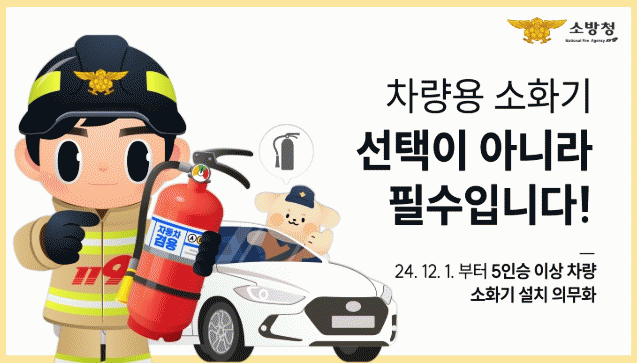 5인승 이상의 모든 차량은 지난해 12월 개정·시행된 ‘소방시설 설치 및 관리에 관한 법률’에 따라 차량용 소화기를 의무적으로 비치해야한다.