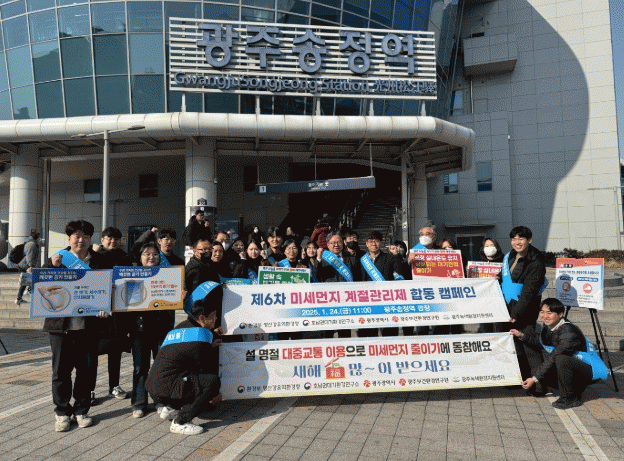 광주광역시는 영산강유역환경청, 호남권대기환경연구소, 광주녹색환경지원센터 등 광주권 소재 미세먼지 관계기관과 함께 24일 광주송정역 일원에서 ‘제6차 미세먼지 계절관리제 안내 캠페인’을 벌였다.