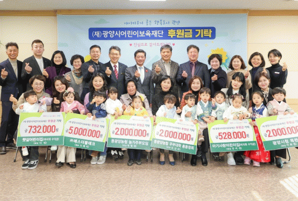 정인화 시장은 “여러분들의 보육재단 기부는 봉사하고자 하는 마음에서 비롯됐다고 생각한다. 물질, 노력, 시간을 희생해 보육재단에 기부해주신 데 매우 감사하다. 이 기부가 광양을 아이 낳아 기르기 좋은 도시로 만들고, 살기 좋은 도시가 될 수 있도록 하는 원동력이다. 여러분들의 정성으로 보육재단이 내실 있는 사업을 추진할 수 있고, 이는 아이 키우기 좋은 도시의 품격을 높여 줄 것이다. 앞으로도 보육재단에 많은 관심 부탁드린다”고 전했다.