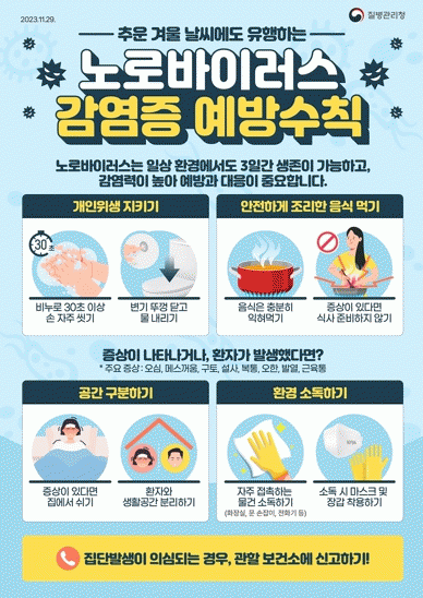 보건소는 또 겨울철부터 이듬해 초봄(11월~3월)까지 주로 발생하는 노로바이러스 감염증 환자도 최근 증가세를 보이는 만큼 식중독 예방에 주의를 당부했다.