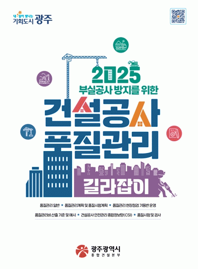 신재욱 광주종합건설본부장은 “이번 지침서를 통해 건설현장에서 반복적으로 발생하는 품질문제와 안전사고를 예방하는 데 큰 도움이 될 것”이라며 “앞으로도 업무지첨서를 지속 개선해 현장 적용성을 높여 공무원과 건설공사 관계자들의 품질관리 역량 강화에 적극 활용하겠다”고 말했다.