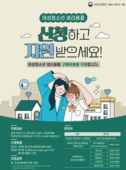 이영동 여성가족국장은 “생리용품 바우처 지원사업은 취약계층 여성청소년들의 건강한 성장을 지원하고 경제적 부담을 덜 수 있는 사업”이라며 “대상자가 정보 부족으로 혜택을 놓치는 일이 없도록 적극 홍보하겠다”고 밝혔다.