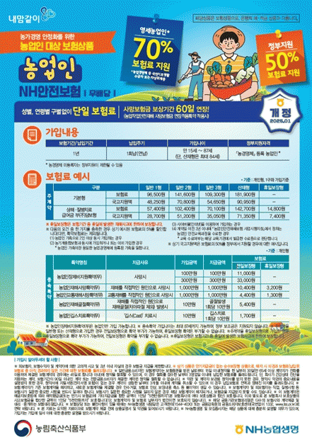 농업인 안전보험은 농작업 중 발생하는 상해와 질병을 보장하며, 전북 도내 농업인은 성별과 연령에 관계없이 단 2만 원의 자부담으로 보험 가입이 가능하다.